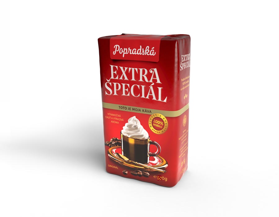 Kávovník je tropická rastlina, ktorej sa darí v horúcej a vlhkej klíme. Existuje množstvo odrôd, ale najznámejšie sú Arabika a Robusta. Dozretá káva má tvar červenej bobule, v ktorej sa nachádzajú dve zrniečka kávy spojené do seba.Popradská káva spracúva zrná tou najšetrnejšou cestou, suchým pražením a jemným mletím, čo zabezpečuje zachovanie potrebných látok v produkte. Originálna receptúra Popradskej kávy Extra špeciál je zmesou najlepších zŕn kávy Arabika z plantáží Strednej a Južnej Ameriky. Šetrné spracovanie a jemné mletie zaručí káve jedinečnú chuť a podmanivú vôňu.